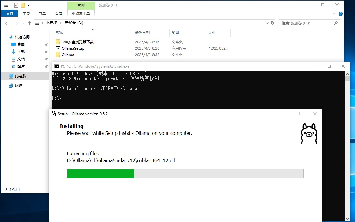 D:\>OllamaSetup.exe /DIR="D:\Ollama"