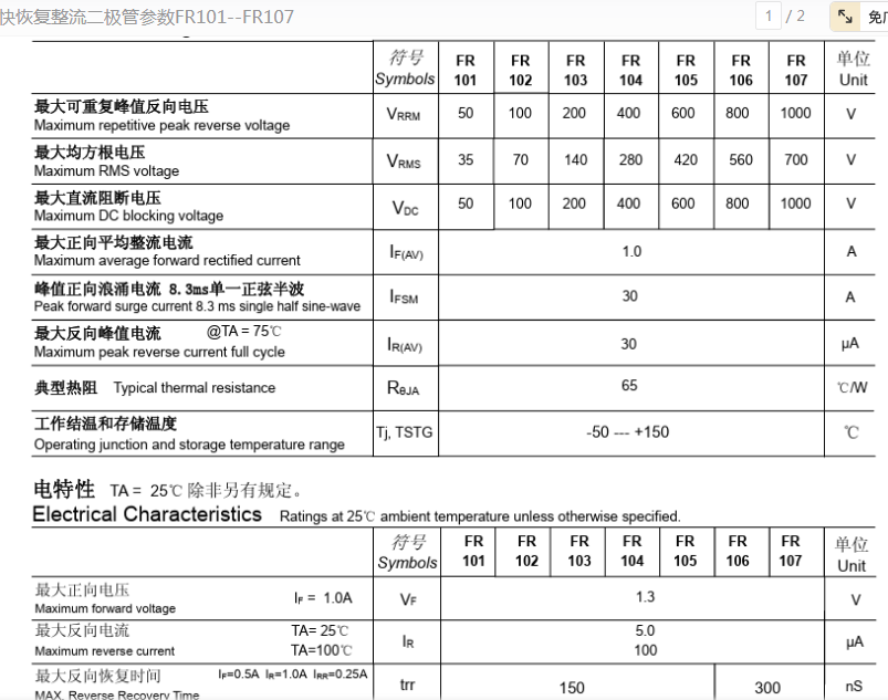 FR103比FR107耐压值低,为什么导线还粗些?