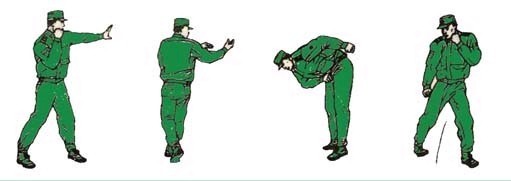 预备姿势:在立正的基础上,听到“擒敌拳预备”的口令,身体左转成格斗势。如下图:
