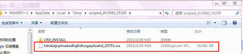 5、在%tmp%目录下找到我们刚才最后时间下载的CRX扩展的文件,这就是安装程序了,里面文件名有 网址链接中的乱码ID号,并保留复制出来即可。