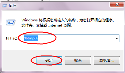 1、打开本地目录 开始 -> 运行 (Win+R),打开运行窗口输入:%tmp% 然后 确定: