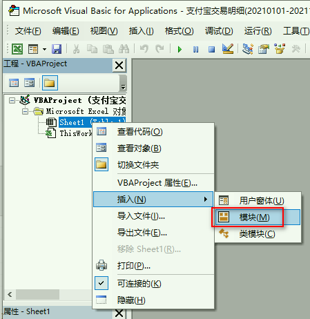 Module1)。你可以在右侧窗口里写 VBA 代码。