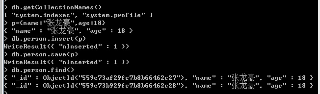 > show collections    --查看数据库中有那些个集合(表)
