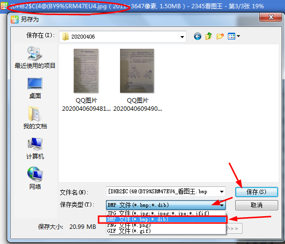 在QQ里面下载图片时,格式不要用默认的jpg格式,改为bmp格式即可解决。