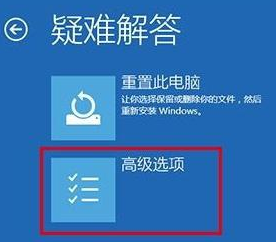 4、在“疑难解答”中选择“高级选项”;